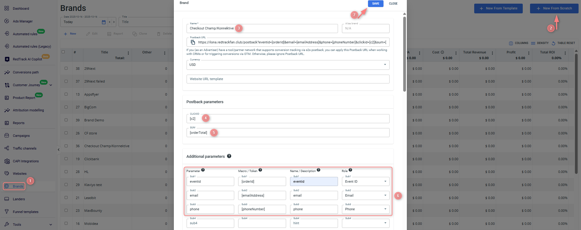 3. Add Konnektive/Checkout Champ Offer source (if you’re and an Affiliate)/ Brand (if you’re and Advertiser) to RedTrack: