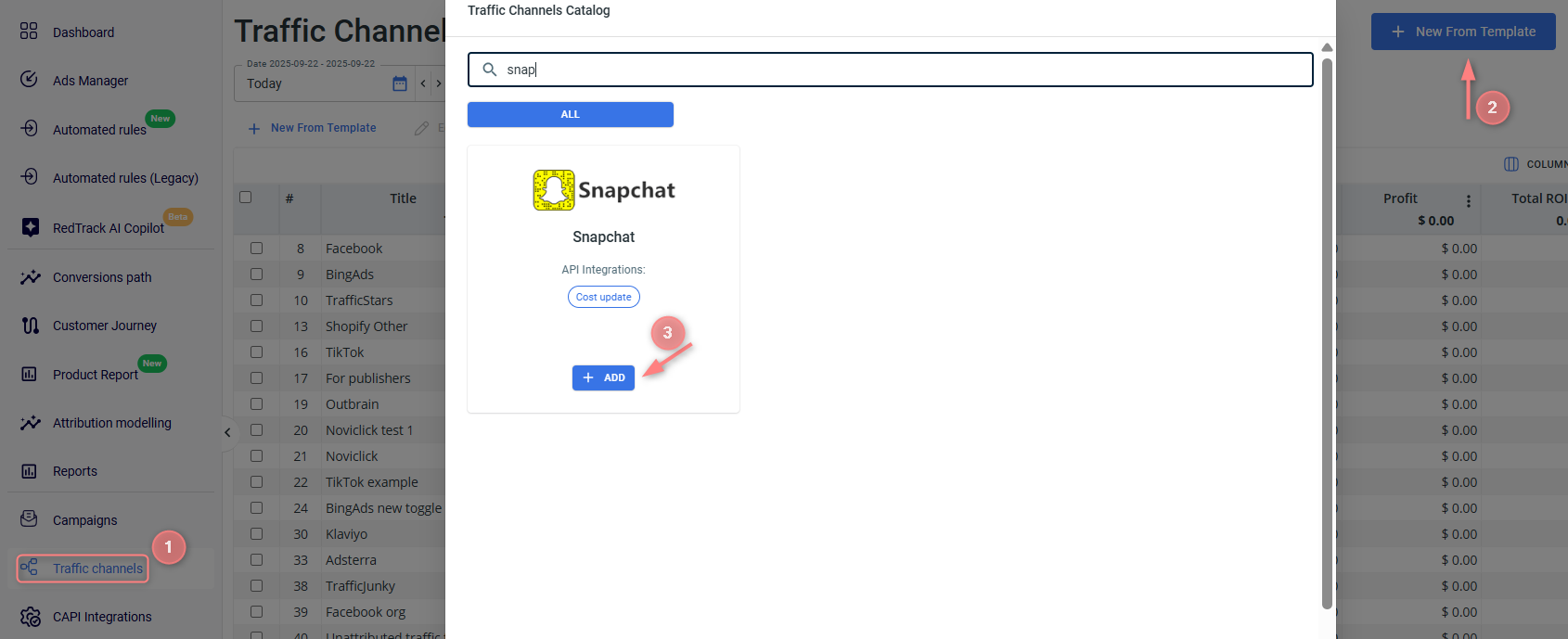 1. Add Snapchat as a Traffic channel in RedTrack.