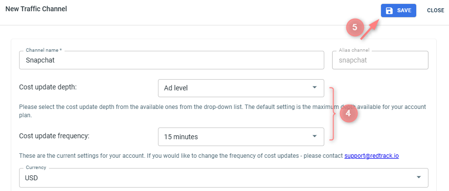 3. Add Snapchat traffic channel to RedTrack and integrate these platforms
