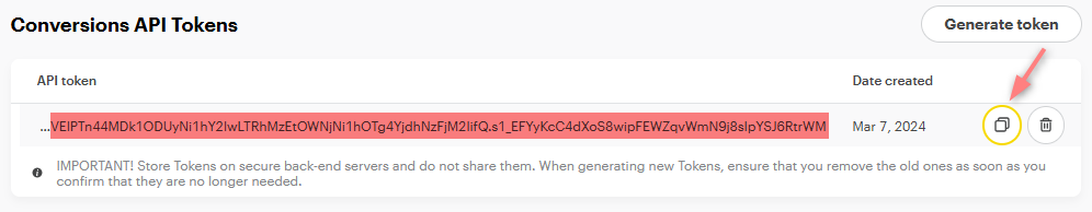 - Add the copied Pixel ID and Conversion API Token to CAPI Integrations.