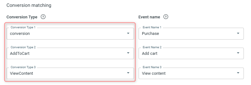 - Conversion Type (column on your left) gives you the list of events you’ve added to RedTrack within step 4:
