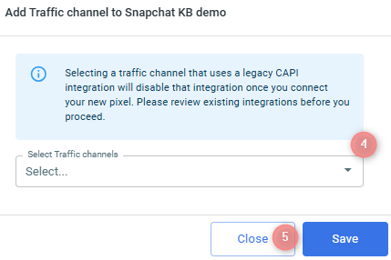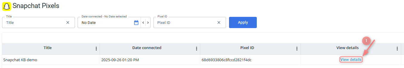 - Assign the added pixel details to either Snapchat traffic channel or your offer/website.